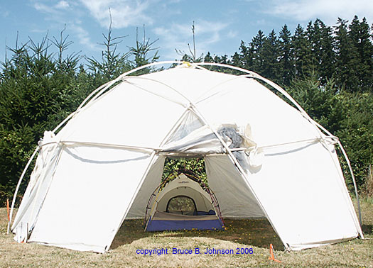 Click here to see an even larger geodesic tent, this one made for expeditionary use by Mountain Hardwear, and a full 6 meters in diameter!