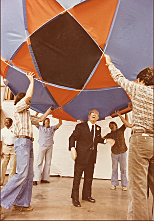 including Bruce Hamilton are having fun showing off a giant geodesic