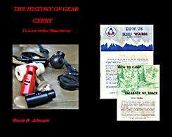 BOOK ABOUT GERRY Mountain Sports: "GERRY, To Live in the Mountains," 90 pgs. ISBN 978-1-4276-3231-9. Offered in softbound or hardbound; 8x10 format lavishly illustrated with high-quality color images (picture of cover below). Please visit Blurb Books, my Publisher's website. Here, you can view a free PDF preview of the first 15 pages, and then order the book if you desire....The GERRY book is also available for $15 as an inexpensive PDF download, directly from me and as an eBook, too....... Autographed hardback or softback books: please contact me at jupiterman47@gmail.com to purchase an autographed copy. Costs will be 10-25% higher due to my having to ship the book twice, once to myself and once to you.... This book was written with direct and very generous assistance from founder Mr. Gerry Cunningham and his daughter Penny. Click here to go to a Book Review, in which Mr. Cunningham himself gives my book about his company a glowing thumbs-up. Click here for my discussion of my pricing and quality. Click here to read my Biography as a writer.... Click on the book cover to preview/purchase the GERRY book!