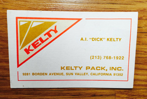 Dick Kelty within The History of Gear was a part of what I call the California group of early pioneers; others from that same time frame include Jack Stephenson of Warmlite, and Ralph Andy Drollinger* of A16 Packs..... Mr. Kelty was known as an inventor and a person who always genuinely "walked his talk" as a true outdoorsman. Many grant him the title of the "father of the frame pack." Although some dispute some of the claims, what is certainly true is that he had many innovations in backpack design that improved weight-carrying and improved comfort. Some claim that he introduced the first aluminum frame backpack, the first waist-belt, the first padded shoulder straps, the first nylon pack-bag, the first zippered pockets, the first hold-open bar; and the first use of clevis pins. Whether he was truly "first" in all these categories I cannot say, but what is most certainly true is that Mr. Kelty was a giant among the gear pioneers, and through his efforts gave backpacking an early and long-continued boost into the national consciousness of the United States. (* Mr. Drollinger contributed some of the information on this page)