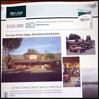 On this page I present the geographic center of Oregon, technically it's Post, but since Paulina is so nearby, I include it also. Both Post and Paulina are really remote places: you drive to Prineville, then follow the Crooked River south and east for about an hour to reach them. It's all ranching country. By the way, when I passed through Post summer 2017, the town was for sale for 1/2 million dollars-- that was the store/post office/restaurant and everything associated! Further comments? (jupiterman47@gmail.com).