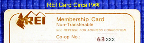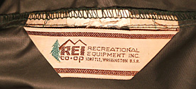 Below is another of REI's earlier labels, when, in this writer's opinion, the company was still relatively close to its roots as a true climber-backpacker oriented cooperative. I date this label to the early 70s.
