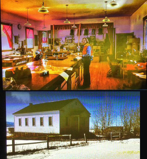 2006 was a happy day. The now-ancient original Rivendell sign from the church in Victor, Idaho rests alongside a brand-new Jensen pack. The occasion was my visit to Eric Hardee's shop in Monroe, WA. Eric was quite excited about this new color for the pack, and I agreed with him, it's as beautiful as my Dr. Expando was, oh, so many years ago when I bought it at Rivendell's headquarters in an old church at the base of the Tetons in Victor, Idaho. Shown is the interior of the converted church in 1975, with Seattle packmaker Mike Schonhofen of Flatland Packworks. He's there to talk with Larry Horton about Rivendell making Flatland packs to increase Flatlands' production capacity. The second picture shows the exterior of the church; I visited there myself in 1978, but it was summer and no snow! Both pictures courtesy of Bill Edwards.
