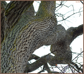 Sequim is a dry little town, in fact, the driest place in all of Western Washington, with a bare 16 inches of rainfall per year, only half of what the Seattle/Tacoma area receives, and less than a third of the massive amounts that drench the South Sound around Olympia. It's the huge mass of the Olympic Mountain range that ultimately causes these variations. With peaks up to nearly 8,000 feet high, the range lies directly in the path of the normal storm track, like a giant wall. Since the majority of rain-bearing storms, and especially the wettest ones, tend to attack the region from the SW, one notes a strong Rain Shadow effect on the NE side of the Olympics. In the first image on this page, I had spotted a bird perched in the topmost branches of a very large Garry Oak that grows near the town's Carrie Blake Park.