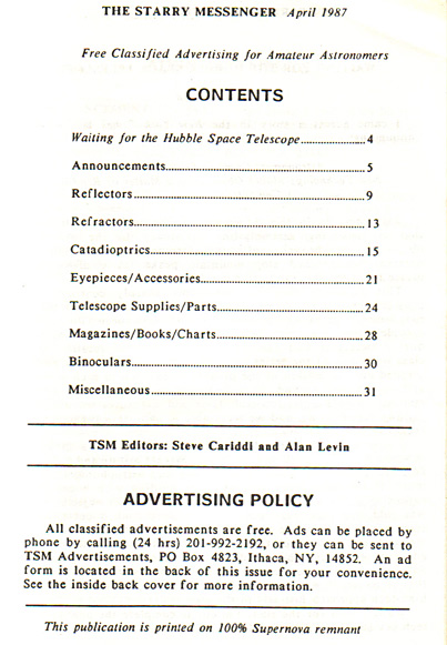 .A couple decades ago, in the 1980s, if you were an astronomer and you had a used scope to sell, you had a slow and limited set of resources. The easiest was trying to sell it to someone in your Club, but putting your astro gear into the local newspaper, or out at a garage sale, would have poor prospects. The best way to sell if you had the time to wait was to send a check in the mail to buy an ad in Sky and Telescope Magazine, but that had a lead time of 1-2 months..... Basically, there was a huge "vacuum in space" in terms of astronomers reaching a large group of their peers to buy and sell used astronomical gear, or to make known their projects and club activities.