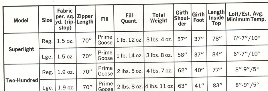 with down insulation or synthetic insulations. Above is a chart developed by major maker Sierra