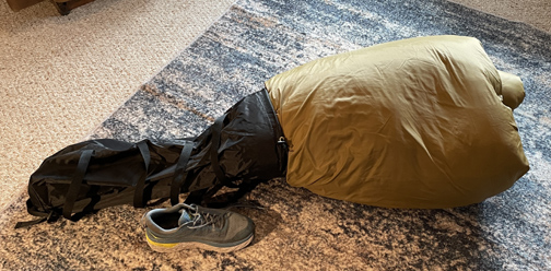 of me trying to stuff that Wiggys Superlight bag into its stuff